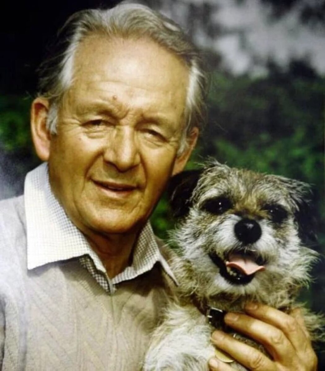 Этого человека зовут Джеймс Альфред Уайт (настоящее имя) или Джеймс Хэрриот (творческий псевдоним) — английский писатель, ветеринар и лётчик, автор книг о животных и о людях. Годы жизни 1916 - 1995 гг.