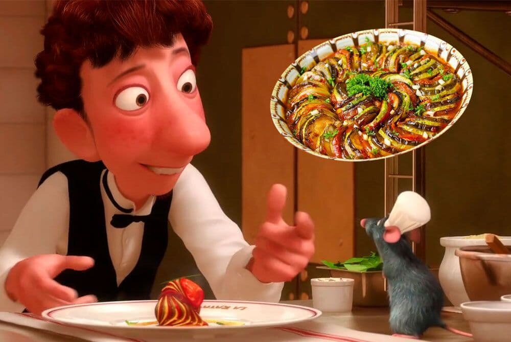 Блюдо, поданное на оценку критику в конце мультфильма «Рататуй» — это не рататуй. Французское национальное блюдо рататуй — это, по сути, простое овощное рагу.
