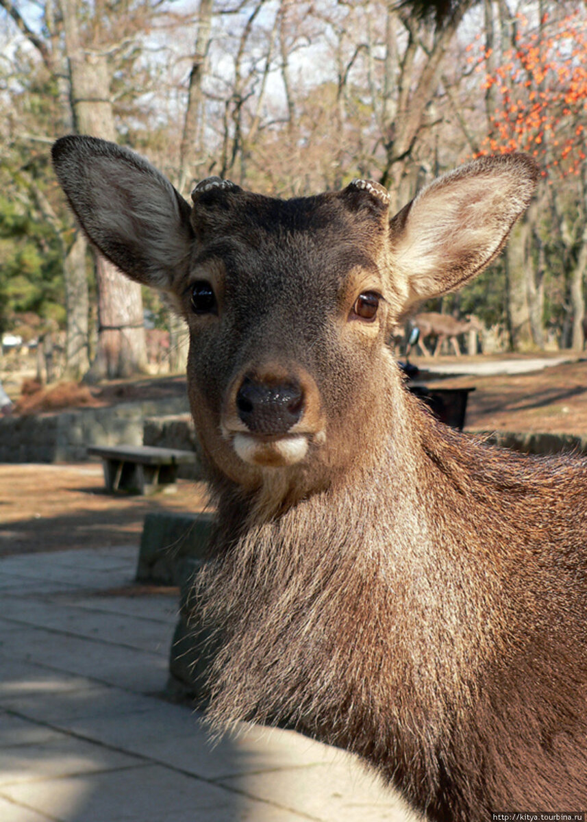 Самое жуткое – оленьи рога, точнее их отсутствие. При таком поведении олени естественно не забывают бодаться, и будь у них рога – мамы и дети уходили бы не с ушибами, а с колотыми ранами. Но рогов нет. Каждый год, в октябре, в Наре проходит специальный праздник Сика-но-цунокири, в который всех оленей, у которых успели вырасти хоть какие-то рога, ловят, поят водой, и отрубают рога. Рога продают за приличные деньги, а олени без рогов лишаются своей гордости.