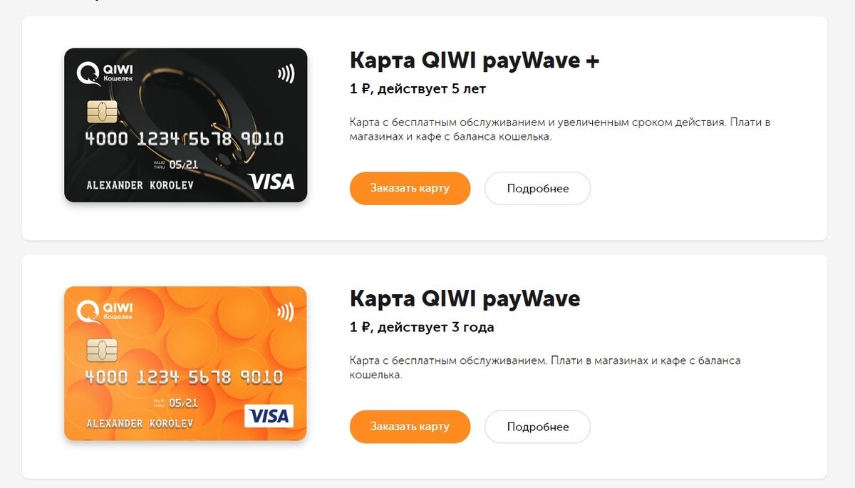 Акция от QIWI - Карта QIWI payWave и Карта QIWI payWave+ всего за 1 ₽