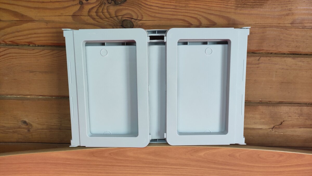 Кстати, на этикетке очень предусмотрительно производитель разместил инструкцию по сборке, что было очень кстати. Конструкция до невозможности простая, но мой декретный мозг не сразу понял, что к чему. А с инструкцией всё получилось быстро и просто. Раскрываем ножки до упора и нажимаем, так же до упора.