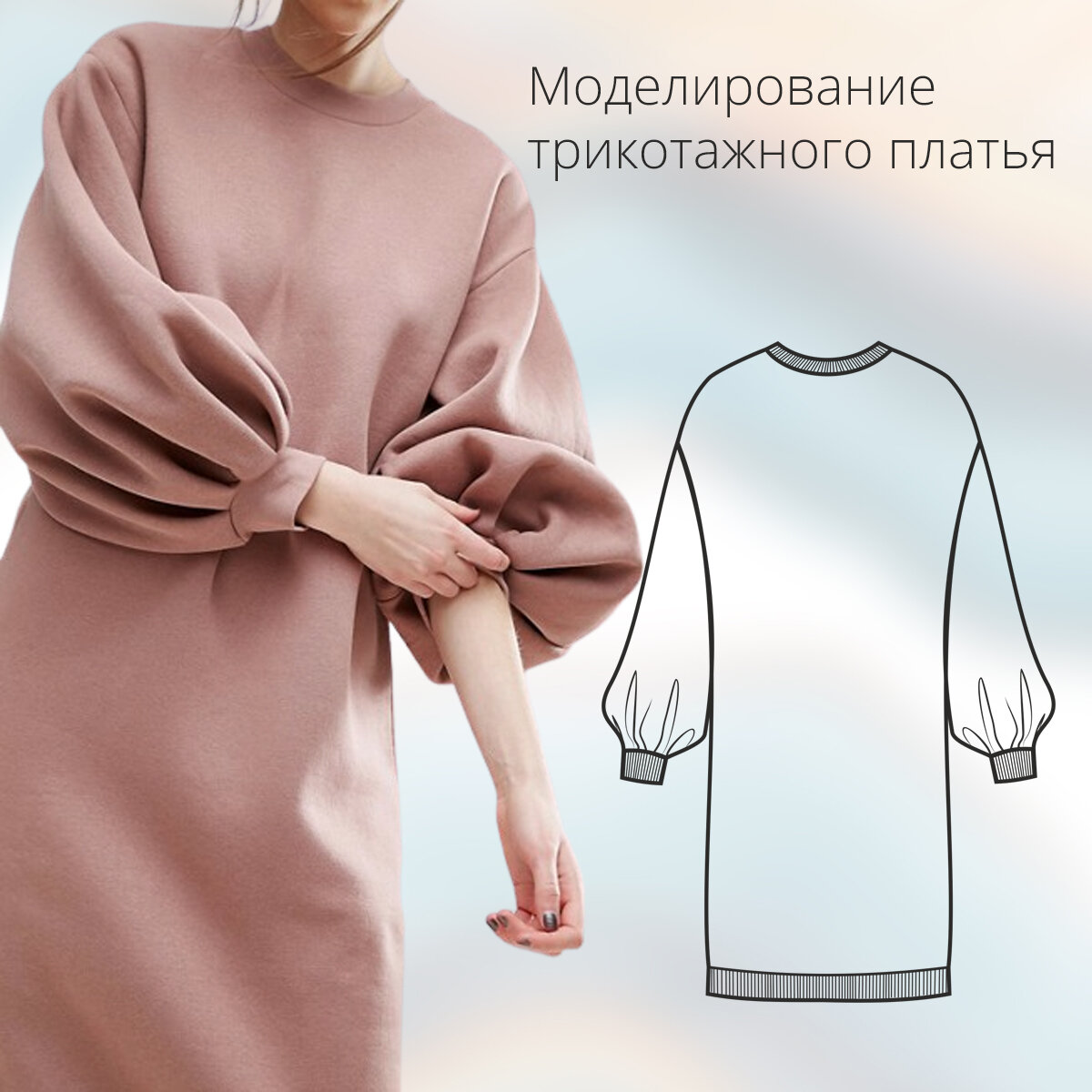 Привет! Нашу команду не покидает тема трикотажа. Поэтому сегодня в рубрике эффектное платье, которое можно быстро выполнить на основе выкройки худи из курса “Трикотаж” #трикотаж_cutsew⠀