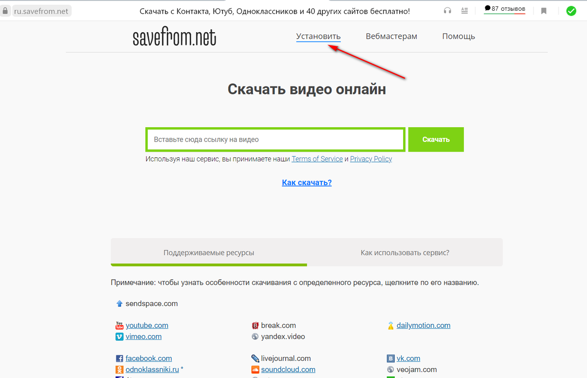 Итак, в этом нет ничего сложного, Заходите в ваш браузер и пишете в поиске "SaveFrom.net" , переходим по первой ссылке и устанавливаем данное разрешение для сайтов.