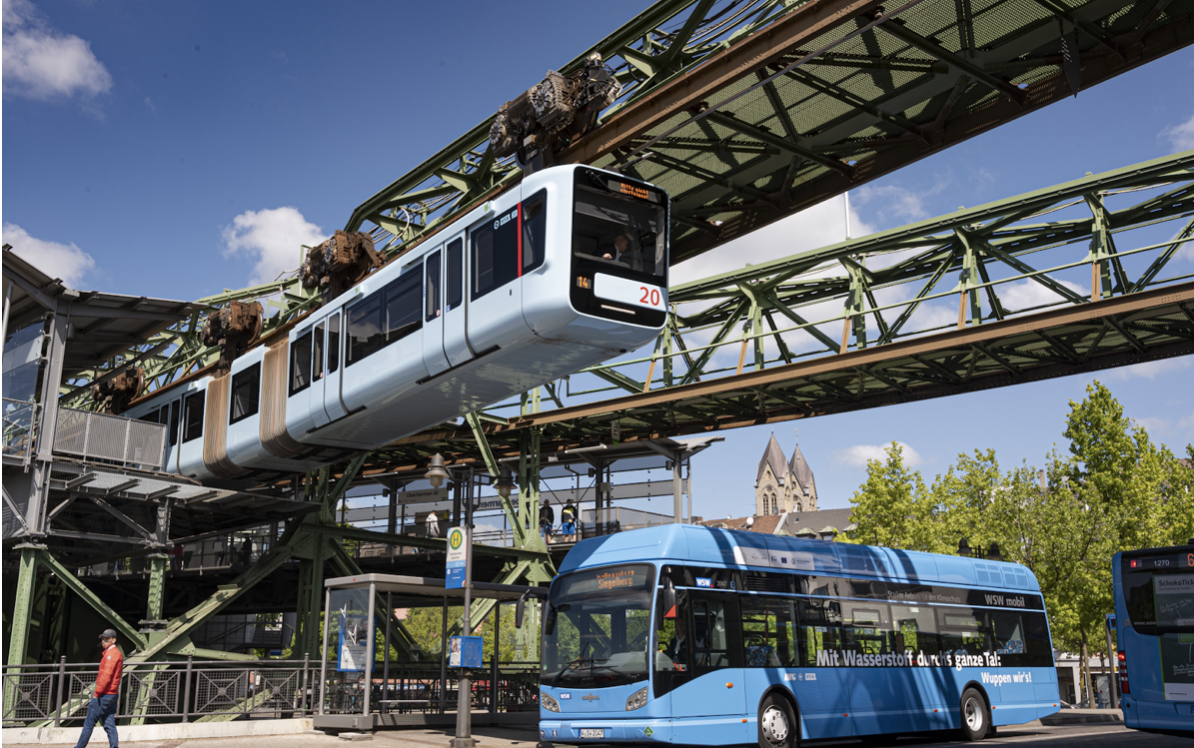 В регионе работает тысяча автобусов, и многие из них перейдут с дизеля на водород. Первые автобусы бельгийского производителя Van Hool прибыли в Вупперталь в 2019 году. С новым парком электрических автобусов можно сэкономить 700 тонн CO2 в год в сравнении с дизельным двигателем. Кстати, один автобус стоит около 650 тысяч евро, что почти в три раза больше, чем обычный.