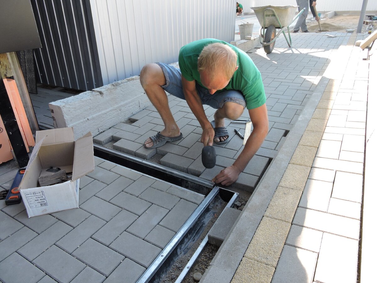 Пятая рекомендация – не нужно укладывать плитку «спиной вперед», наступая на утрамбованную основу. Укладку тротуарной плитки необходимо производить с площади, где она уже уложена.