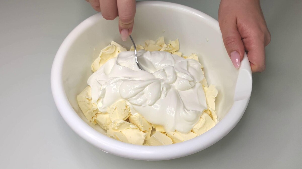 Все члены нашей большой семьи обожают торт "Наполеон". Из множества рецептов, что я пробовала - этот мамин рецепт "Наполеона" самый вкусный! Он в меру сладкий и просто тает во рту. Я готовила торт "Наполеон" для выпуска под названием "МЕНЮ НА НОВЫЙ ГОД 2021. ГОТОВЛЮ 12 БЛЮД". Подробный рецепт его приготовления вы сможете посмотреть кликнув на видео ниже: Список ингредиентов для приготовления торта "Наполеон" вы сможете найти в конце статьи. Процесс приготовления: 1.В размягченное сливочное масло я выливаю сметану и перемешиваю массу до однородного состояния. 2.Затем я добавляю соль и следом высыпаю половину муки. 3.Начинаю замешивать тесто и далее частями я высыпаю к нему оставшуюся часть муки. Я готовлю двойную порцию торта. Если вы не хотите чтобы торт был слишком большим, делите количество представленных ингредиентов на двое. Замешиваю тесто, а затем раскатываю из него колбасу средней толщины. Нарезаю тесто на 9 частей, а затем раскатываю из них колобки. 4.У меня будет торт диаметро