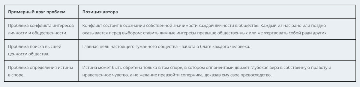 - Формулировка и раскрытие проблематики на 2-4 предложения (называем автора и суть изложенных мыслей).