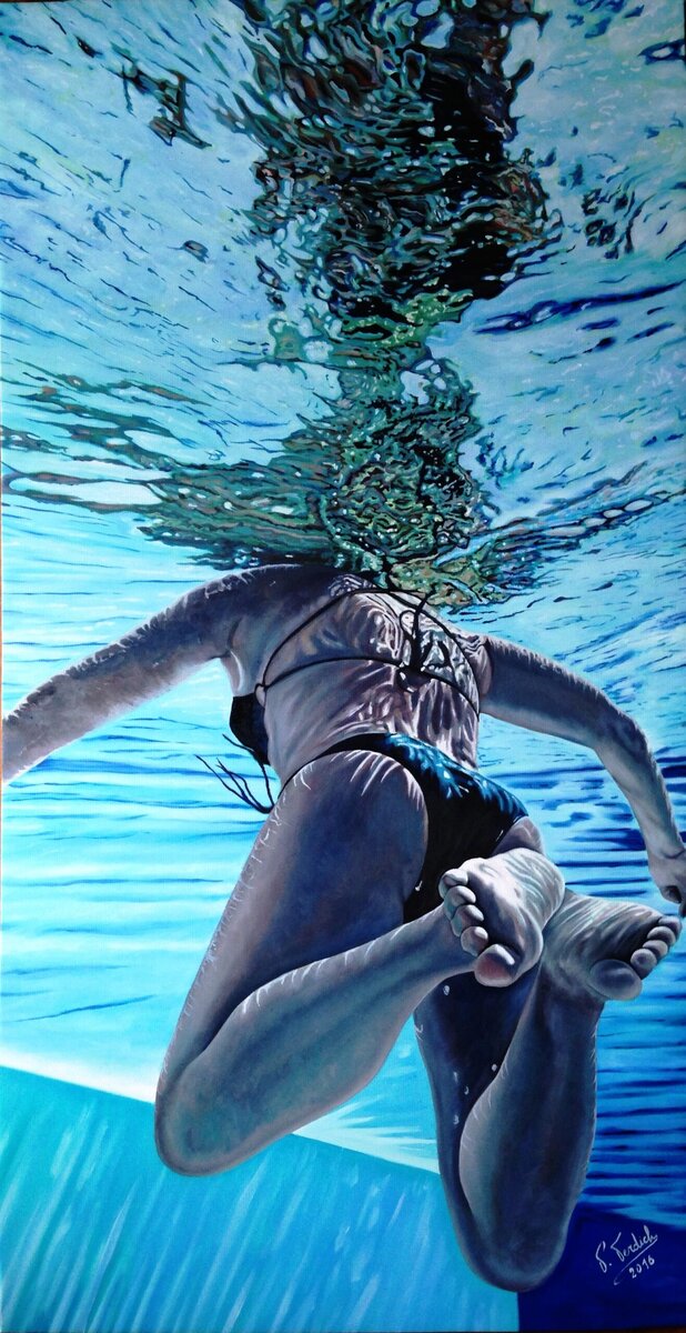 Мои любимые предметы - это человеческие фигуры, представленные в ситуациях близости и уединения, в метафизической и сюрреалистической атмосфере, как в замкнутом пространстве, где выражаются их внутренние мучения, так и в водной среде, из которой возникает глубокое чувство тишины. Цель состоит в том, чтобы визуализировать подробные образные предметы, характеризующиеся светящимися поверхностями и неотразимыми изображениями, которые предлагают сочетание беспокойства, неуверенности, срочности, спокойствия и духовности. Медитативно по тону, я также стараюсь возвысить свет, чтобы получить картины, пронизанные необычной атмосферой и снятые с мимолетной яркостью.