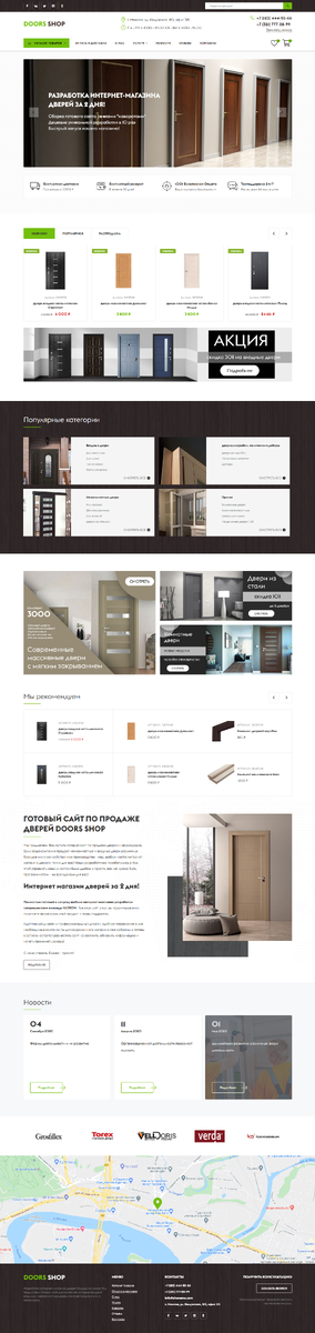 Шаблон имеет разнообразный функционал, и вы сами можете выбрать необходимый вам набор расширений. Базовую версию можно посмотреть по этой ссылке: doors.demoultron.ru