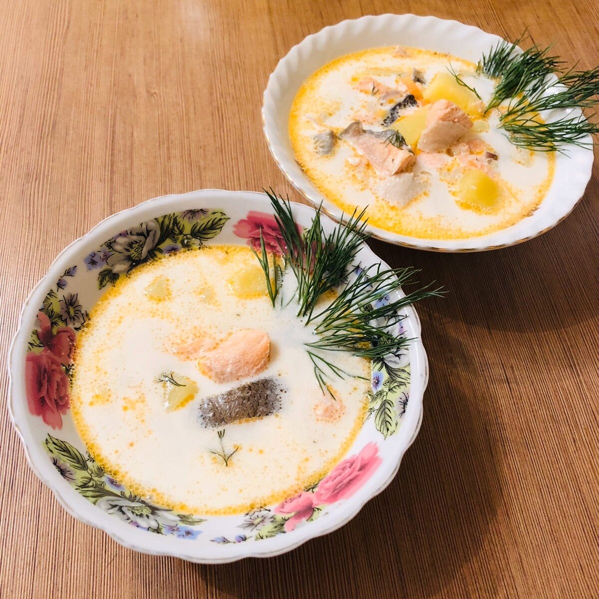 4. К бульону вернуть рыбу, добавить поджарку, залить сливки. Через 5 минут убрать с огня и оставить настаиваться 10 минут.