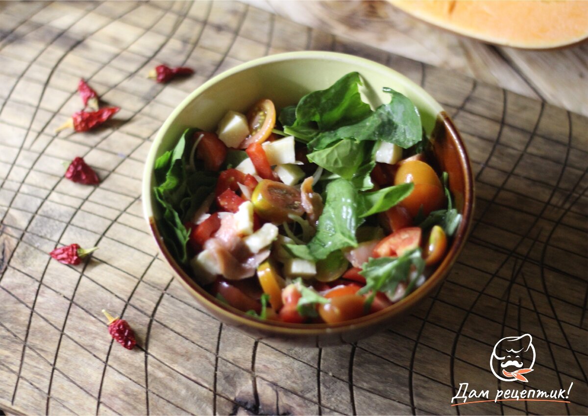 Вкусный, полезный и ароматный салат со шпинатом, адыгейским сыром и копченым лососем готов! Подают холодную закуску сразу же после приготовления.