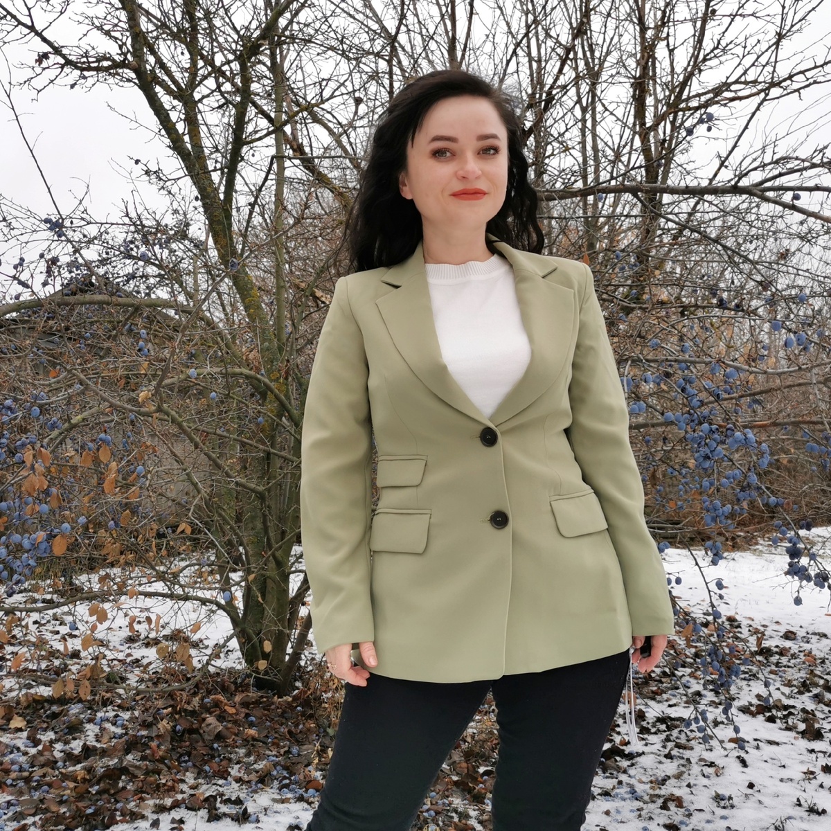 Я заказала сразу 3 вещи. Но сейчас пока покажу вам блейзер оливкового оттенка, который не оставил меня равнодушной.