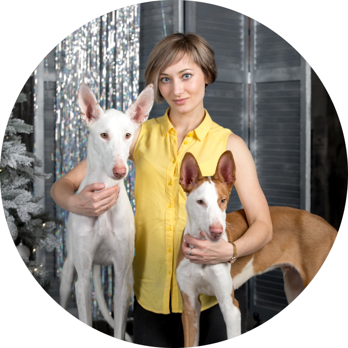 Валентина: "Конечно в первую очередь все обращают внимание на большие уши и неординарную внешность. Высокопоставленная голова, уши торчком, сухое и элегантное тело, кажется высоконогой, в целом стильная. Также у поденко ибиценко очень длинный хвост, который похож на извивающеюся змею, иногда кажется хвост живет своей жизнью. Голова, по отношению к телу некрупная, в форме усеченного конуса, со стоячими ушами, маленькими глазами янтарного цвета, нос телесного окраса. Грудная клетка в отличии от многих других пород не достаёт уровня локтя, что является породным признаком. Живот умеренно подтянут. Окрас варьируется от белого до красного(рыжий). Белый, белый с пятнами, красный. Полностью красными поденко не бывают, имеются белые отметины.