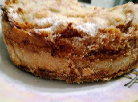 Другая проблема оказалась с тестом. На дне осталась сухая смесь, которой,видимо, не хватило влажности от яблок, чтобы пропечься,как остальное тесто.
