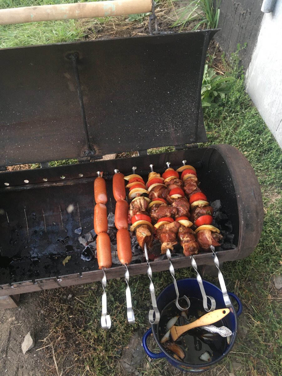 Дополнил его ножками и вытяжкой. Теперь можно жарить шашлык в любую погоду т любое время года внутри гаража.