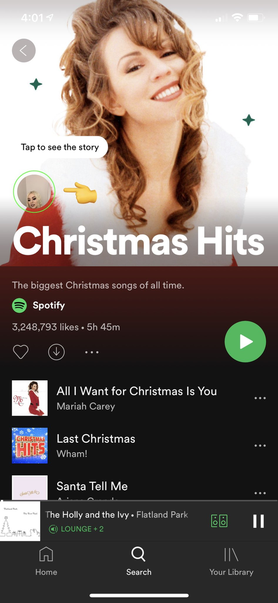 Пока что истории можно увидеть лишь в нескольких плейлистах. Это новогодне-рождественские треки и песни известных ребят типа Бибера, ДжейЛо и других.