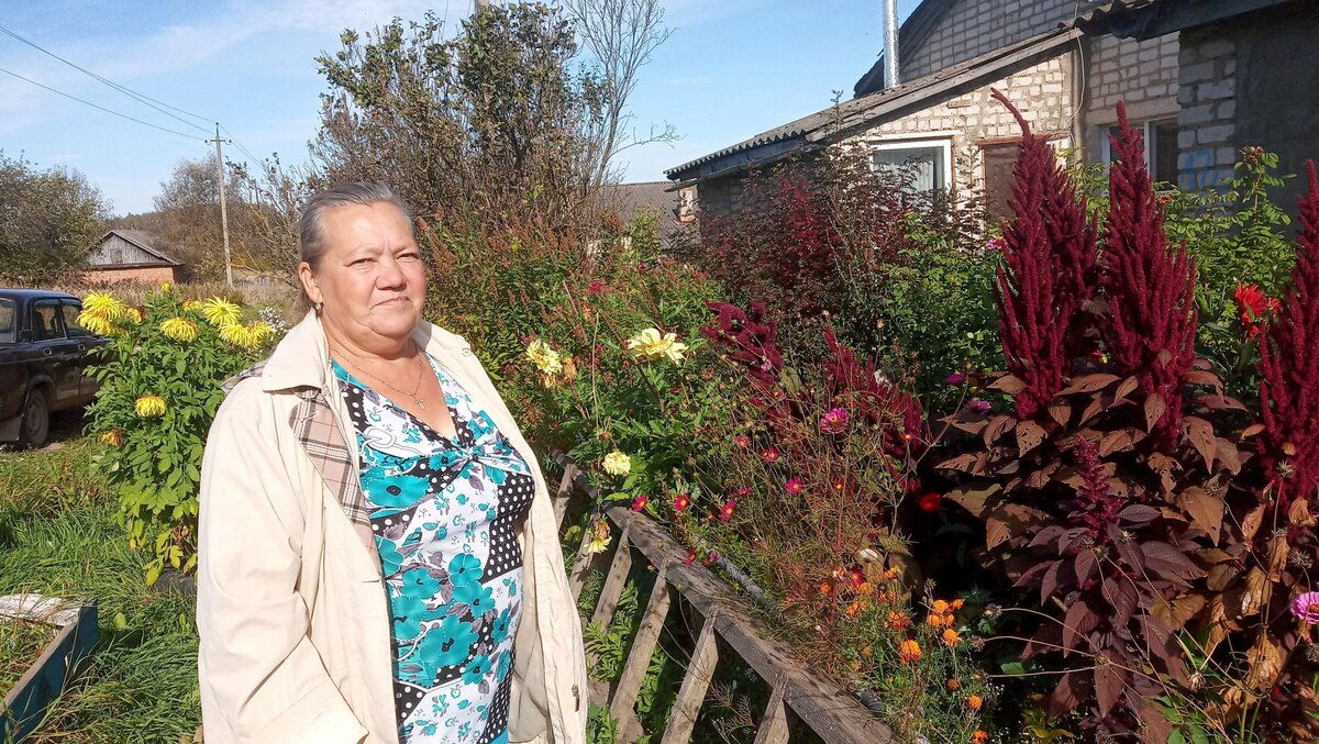 — А тут вот газ через дорогу прокопали, я взяла еще насажала цветочков, а то все равно бурьян растет, — говорит Ахромова, и снова ее мысли уносятся в прошлое, когда еще работала ферма. Оказывается, все с этой фермой связано, даже цветы.