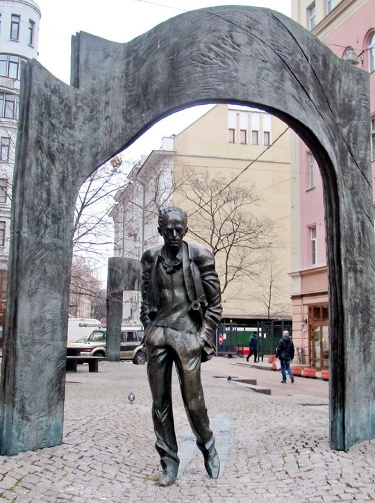Справа дом красного кирпича 12- доходный дом В. Н. Никифорова (1914г.). Здесь жил жизнерадостный пушкино- лермонтововед Ираклий Андронников. 1917 г. в этот дом снимал комнату Борис Пастернак. Но прожил всего полтора года. Здесь он написал «Детство Люверс», стихи: Весна, я с улицы, где тополь удивлен, Где даль пугается, где дом упасть боится, Где воздух синь, как узелок с бельем У выписавшегося из больницы....