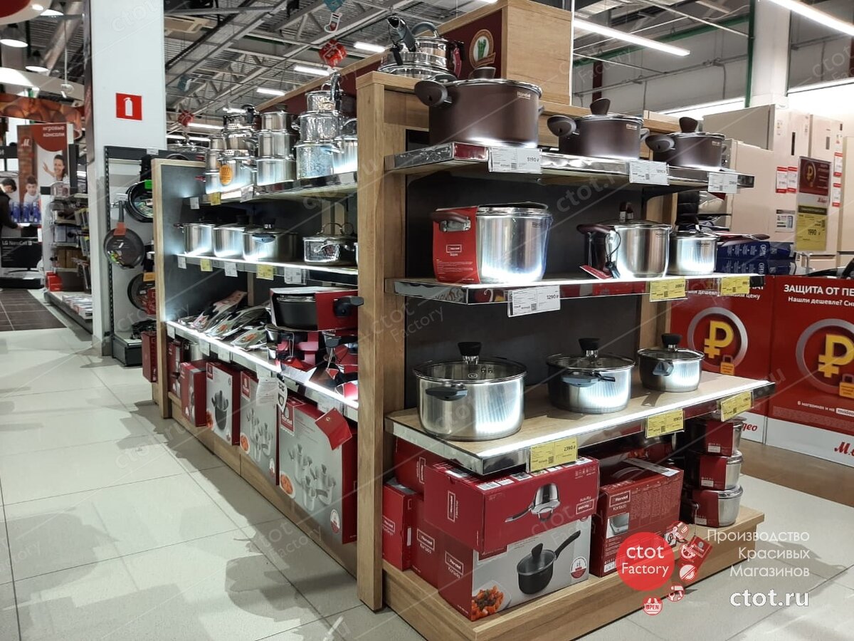 Фабрика Ctot Factory проектирует и производит бренд-зоны для торговых центров, выставок и других коммерчески значимых мероприятий. И сегодня мы предлагаем вдохновиться новым успешно реализованным проектом бренд-зон для производителя кухонной посуды "Röndell" в сети магазинов электроники "М.Видео" в г. Москва