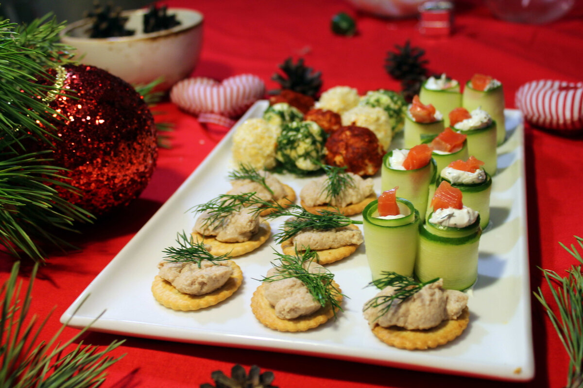 - Закуски (аперитив, который только лишь «подогревает» аппетит человека перед основным блюдом). Закуски всегда маленькие и не сытные, они часто состоят из овощей, сыра и морепродуктов. Закуска – идеальное угощение для первого праздничного тоста.