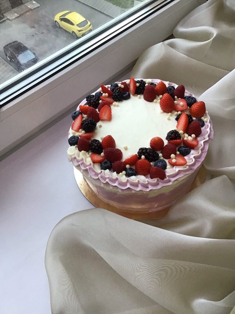 Но. Торт я сделала в срок. В этом заказе было ещё два чизкейка, один из которых у меня сломался при сборке )). Треснула основа, сыр вытек на противень. Потом с братом и сестрой ели это всё ложками )). Было весело.