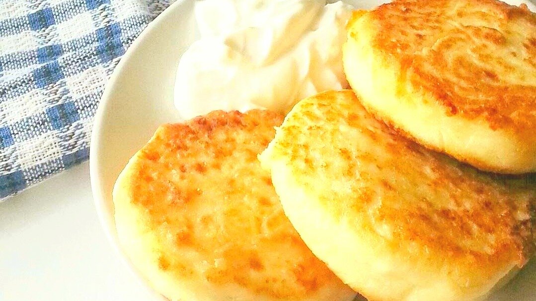 Сырники, сметана и чашка зеленого чая.