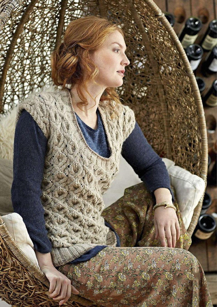 Безрукавка из красивых кос спицами, описание: