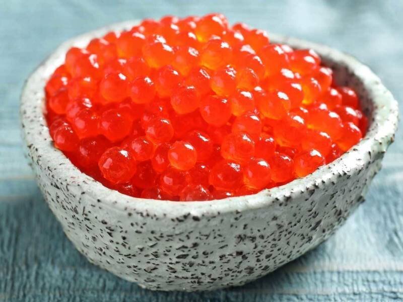 Красная икра является вкусным и полезным деликатесом, который может подаваться на стол как в виде отдельной закуски, так и в составе разных блюд или вместе с какими-то продуктами. Сегодня мы расскажем о нескольких вариантах подачи красной икры, которые будут уместны в той или иной ситуации. Если говорить о фуршетах или банкетах, то при их организации обычно рассчитывают подать 30 г икры на каждого гостя. Когда красная икра подаётся как отдельная закуска, то её, как правило, выставляют в стеклянной, деревянной или серебряной посуде. В дополнение к ней предпочтительно использовать небольшую ложку, выполненную из того же материала, что и сама ёмкость с икрой. В дополнение к ёмкости с икрой на стол можно поставить посуду со сливочным маслом, тосты и крекеры, которые подходят для употребления в пищу вместе с деликатесным продуктом. Не секрет, что наиболее ярко вкусовые качества красной икры раскрываются, когда продукт охлаждён. Именно поэтому посуду с икрой обычно помещают в ёмкость с колот