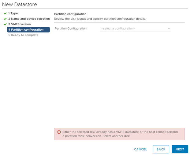 Далее если нужен VMFS датастор, то проходим по мастеру и создаем его.