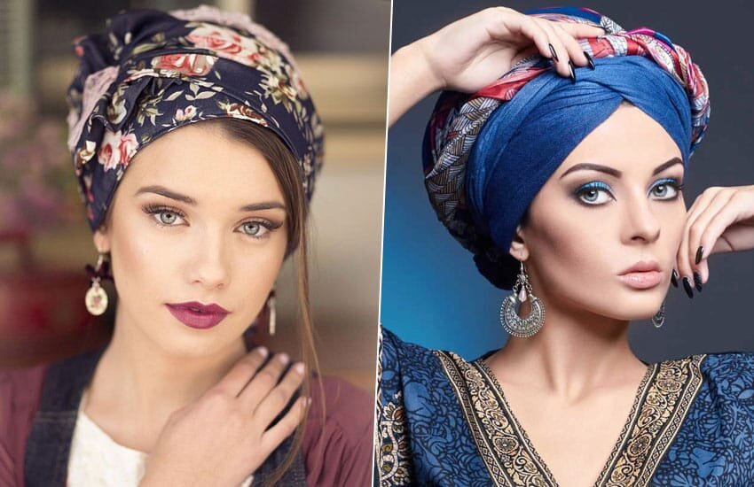 Более легкие модели чалмы текстильные, мягкие и яркие они хорошо сочетаются с курткой, шерстяным пиджаком, женщина становиться загадочной и ут