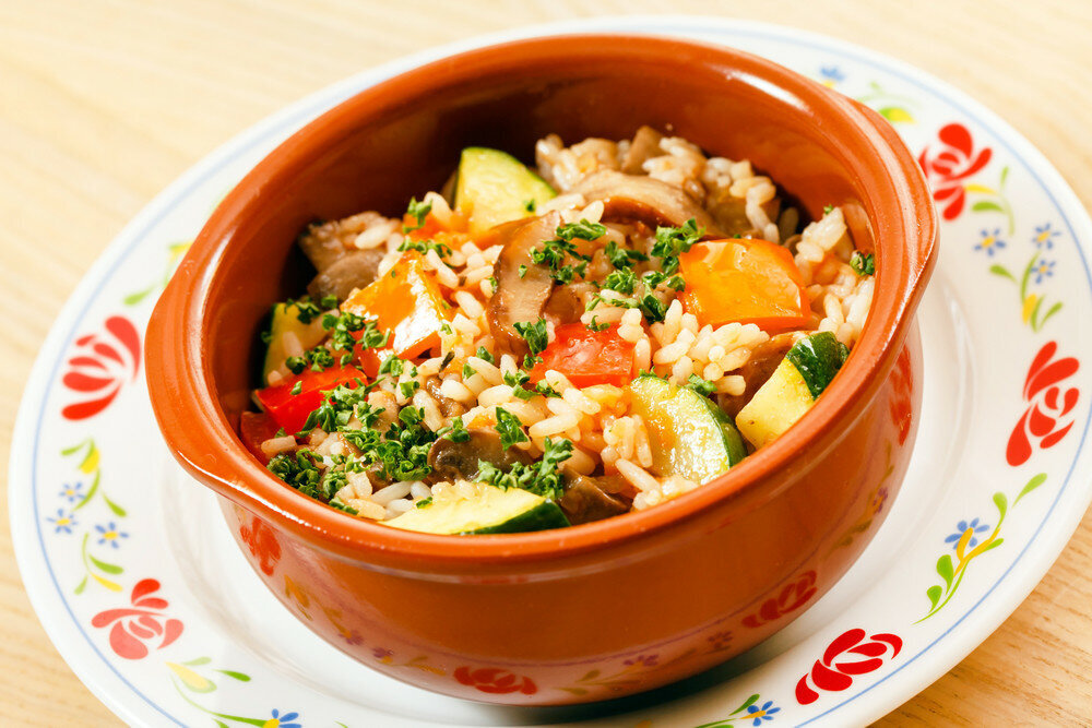 Способ приготовления риса с овощами в горшочках