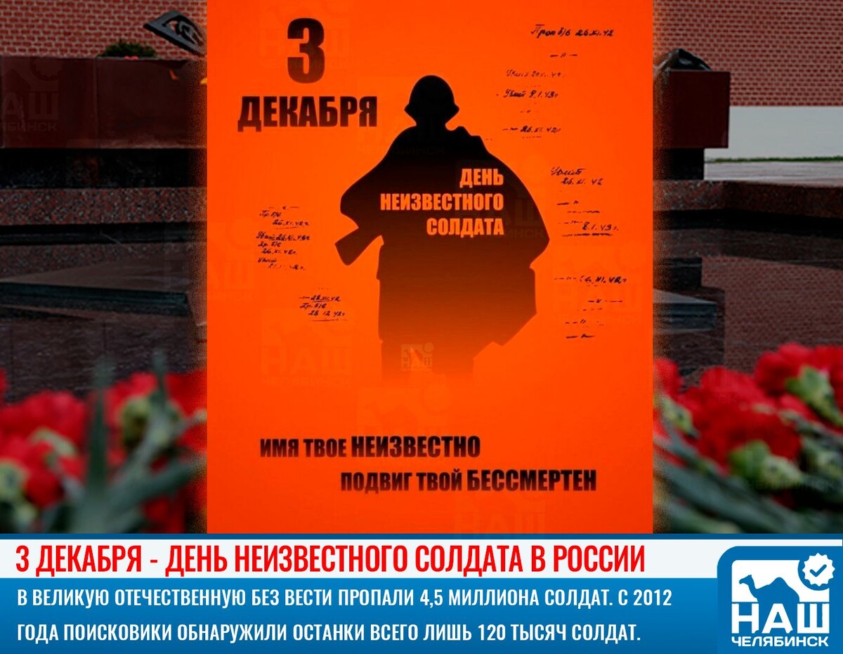 🇷🇺 Сегодня, 3 декабря, в России отмечается День Неизвестного солдата!