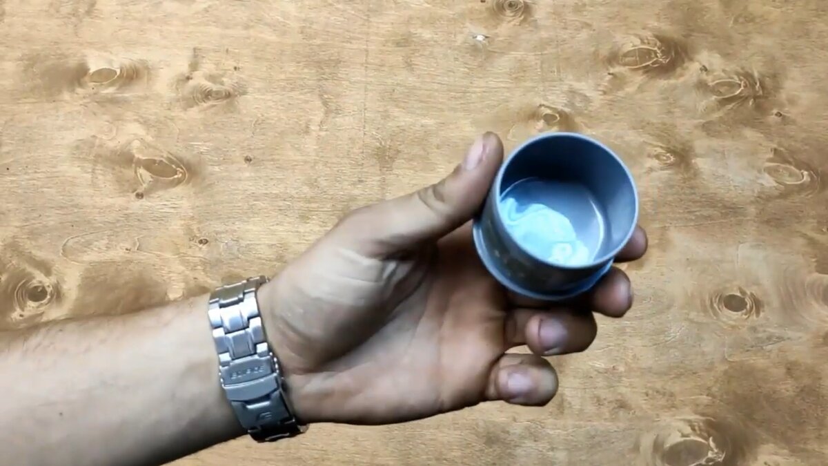 За кадром отрезали горлышко от бутылки объемом 5 литров, края промажем клеем.