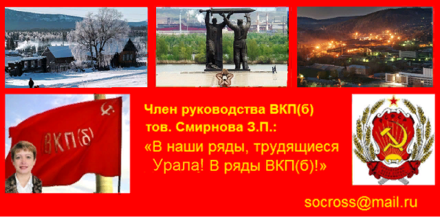 PS. По имеющимся данным, трудовой Миасс начал активно выступать против хозяев города, приватизировавших всё, что можно и нельзя. Подробности - в следующей статье.ВКП(б) самым решительным образом поддерживает борьбу рабочих Миасса и готова предоставить необходимую информационную и другую поддержку. Просьба к товарищам - распространить данную информацию, выразить солидарность здесь в том числе! - ЗП