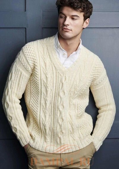 Узор из кос на переде и спинке: 49 п. = 18 см.