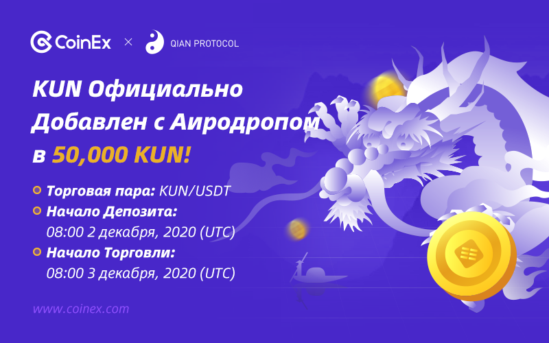 Чтобы предоставить больше торговых вариантов, после тщательных проверок CoinEx добавила KUN в 8:00 2 декабря 2020 года (UTC) и запустила Airdrop в 50,000 KUN.