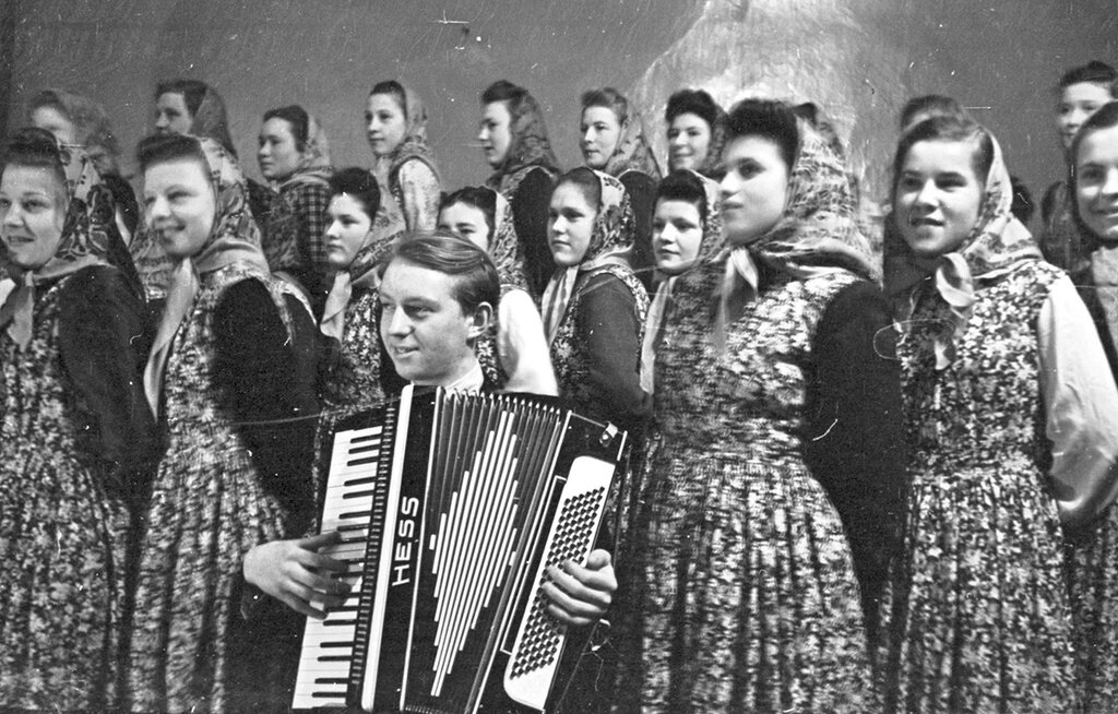 Сейчас некоторые исследователи оценивают советскую художественную самодеятельность как уникальное в мировом масштабе явление. И правда, ну кто и где так пел и выкаблучивал? Вообще началось всё с 1927 года, с агиттеатров. В пятидесятые годы (прошлого столетия) уже начало развиваться более серьезно, и в начале шестидесятых это социокультурное явление захватило всю страну. Подкреплялось это и кадрами, коих готовили в культпросветучилищах и институтах культуры, и большим количеством специальной периодики. И не было уже такой деревни и такого предприятия, где не сложился бы свой коллектив художественной самодеятельности. КПСС это очень поощряла и направляла (хотя формально всем руководили в сцепке Совет Министров СССР, ЦК ВЛКСМ и ВЦСПС). Ну а в ответ хоры пели величественные гимны партии родной, полям золотым, советскому солнцу в небе. Звонкоголосые дети читали со сцены стихи «Я себя под Лениным чищу, чтобы плыть в революцию дальше». Здорово, наверное, воодушевляло во времена, когда маргарин был за лакомство, за белым хлебом очереди с утра, в сельмагах из конфет одна «Дунькина радость»…