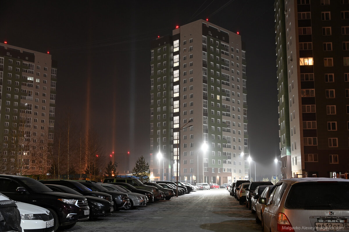 Решил погулять по ночному городу, чтобу заснять это необычное явление. Пока в 2 часа ночи машина грелась, я побегал со штативом по двору. А когда решил сменить локацию, вдруг