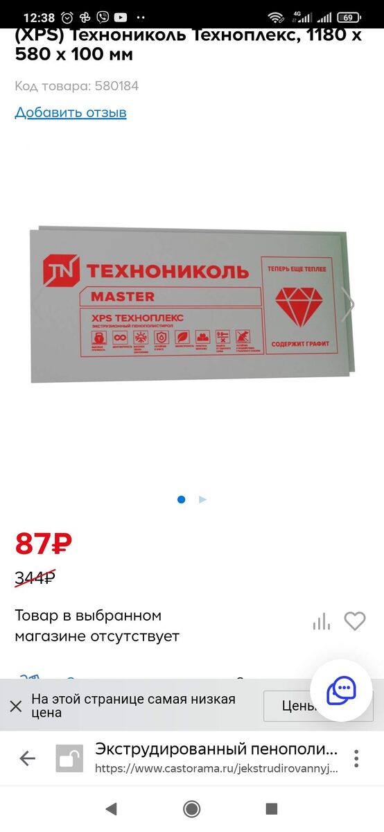 Если кто-то не верит мне то по этой ссылке он до сих пор бьется только нет в наличии https://www.castorama.ru/jekstrudirovannyj-penopolistirol-xps-tehnonikol-tehnopleks-1180-x-580-x-100-mm-1