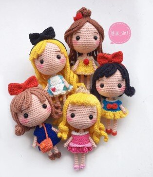 Бесплатный мастер-класс по вязанию маленьких кукол в образе принцесс знаменитых мультфильмов Дисней. Автор схемы вязаных игрушек: jib_soya. Изменяя прическу, цвет волос, одежду и аксессуары вы сможете создать целую коллекцию милых кукол: Золушку, Рапунцель, Белль и др. Из описания данной схемы вы также узнаете как связать наряд для Белоснежки крючком.