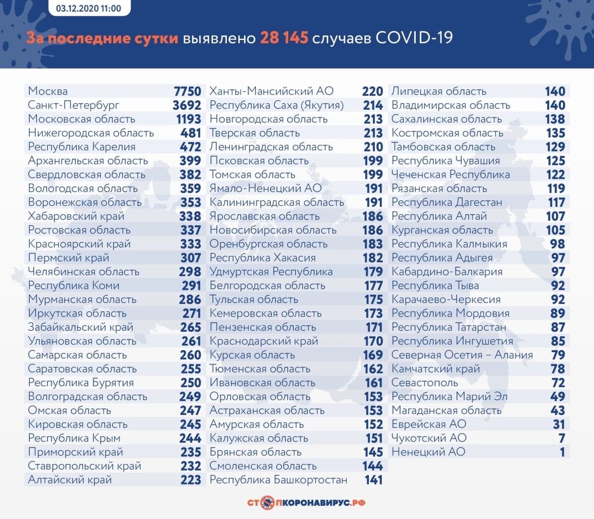 В России за последние сутки выявлено 28 145 новых случаев коронавируса!
