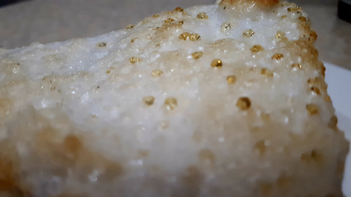 У этого пирога очень трогательное название. “Слезы ангела”. И сам по себе он выглядит нежно и невесомо. При остывании на белковой воздушной подушке появляется россыпь прозрачных слезинок. Несмотря на свою красоту и изысканность, пирог очень прост в исполнении. К тому же и очень вкусный. Выпекается он по принципу большой королевской ватрушки, или как ее еще называют, творожный пай. Пирог состоит из трех слоев: основа из песочного теста, творожная прослойка и взбитые до устойчивых пиков белки - подушка, в которую плакал Ангел. Тесто: мука-1 стакан, разрыхлитель - 1 ч. ложка, холодное сливочное масло-80 гр., яйцо-1 шт., сахар-2 ст. ложки. Муку смешать с разрыхлителем и сахаром, порубить с маслом и перетереть в мелкую крошку. Вбить яйцо, замесить плотное тесто. Пока готовятся остальные слои, тесто надо охладить. Намного удобнее размять мягкое тесто, а потом подержать его в холоде. Выкладываем в форму слоем в пол сантиметра и убираем на 30 минут в холодильник. Вынув форму с тестом и