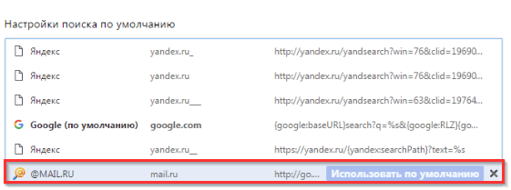 2. Далее переходим к настройкам поисковых систем. Если проинсталлирован сервис или приложение от «МэйлРу», то поиск автоматически изменится.