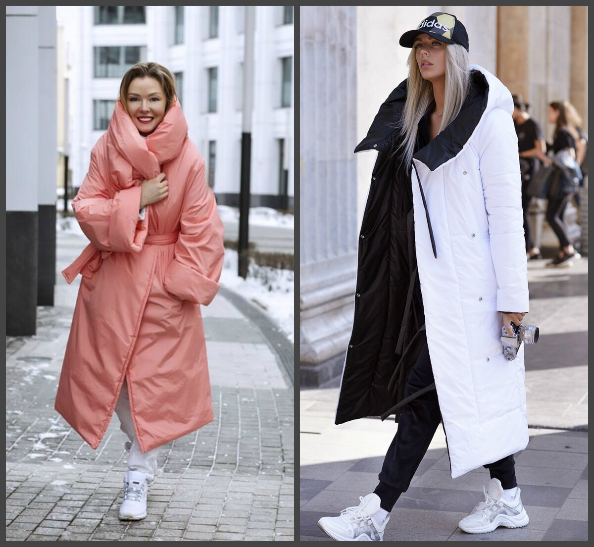 Начнем с того, что пуховики-одеялки и оверсайз никуда не делись и по-прежнему актуальны. Есть подозрение, что с нами они надолго, уж очень комфортными они получились. Главное помнить - такие модели добавляют не только тепла, но и монументальности.