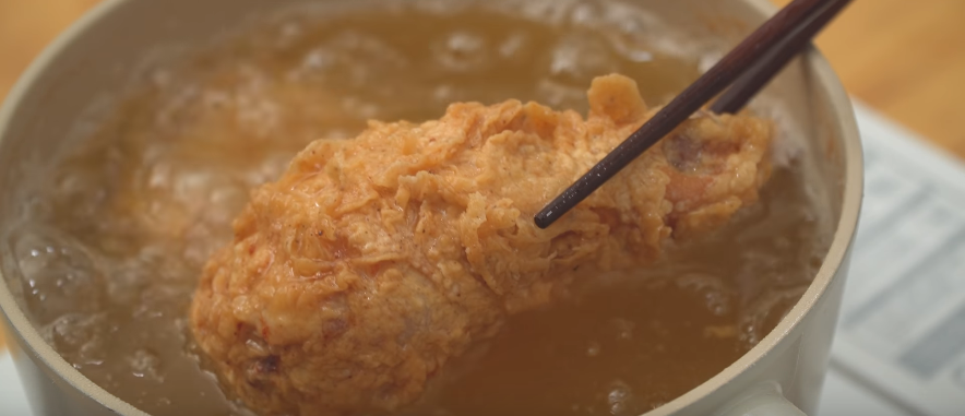 17. Если корочка стала золотистого цвета и части курицы начали всплывать, то достаем.