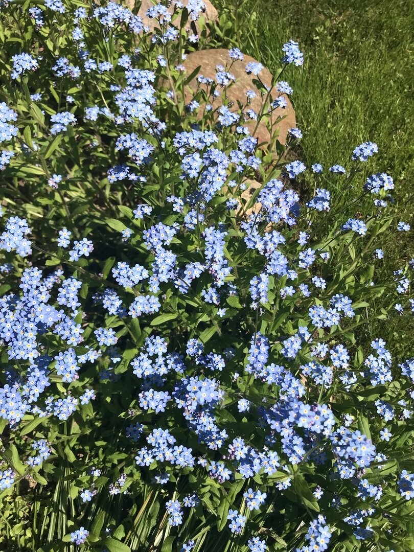 Каково же было мое удивление , когда на этой дальней клумбе появилось голубое облачко этих нежных и простеньких цветов. Как это было красиво - просто загляденье! Я решила, что обязательно посажу незабудки в компанию к другим цветам.
