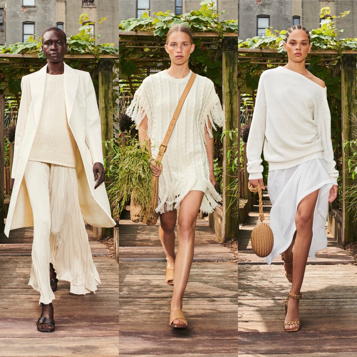В коллекции Michael Kors Collection SS’21 образы действительно стали мягче, но акценты расставлены верно. Воздушные белые платья с кожаными ремнями смотрятся прекрасно. Плетение в аксессуарах - отличительная черта этой коллекции. Добавляет изысканности и деликатности. Меня покорил пояс от тренча на шее - берём на заметку. Очень интересная идея.