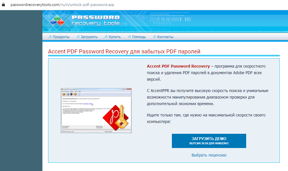1. Скачайте и установите Accent PDF Password Recovery для PDF файлов всех версий формата Adobe PDF