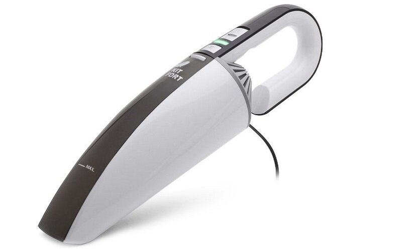 Для работы достаточно подключить пылесос через прикуриватель в машине, длина сетевого шнура составляет 4.5 метра, поэтому проблем с удобством эксплуатации у вас не возникнет. Девайс оснащён пылесборником объёмом 0.40 мл и тремя насадками, идущими в комплекте: силиконовая насадка — для всасывания жидкостей с поверхности, узкая насадка — для уборки труднодоступных мест, ворсовая насадка — для уборки ковриков и кресел автомобиля.