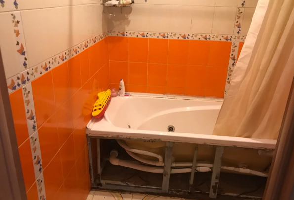 Выложить ванную оранжевой плиткой – решение достаточно смелое. Делая ремонт здесь, вероятнее всего, не